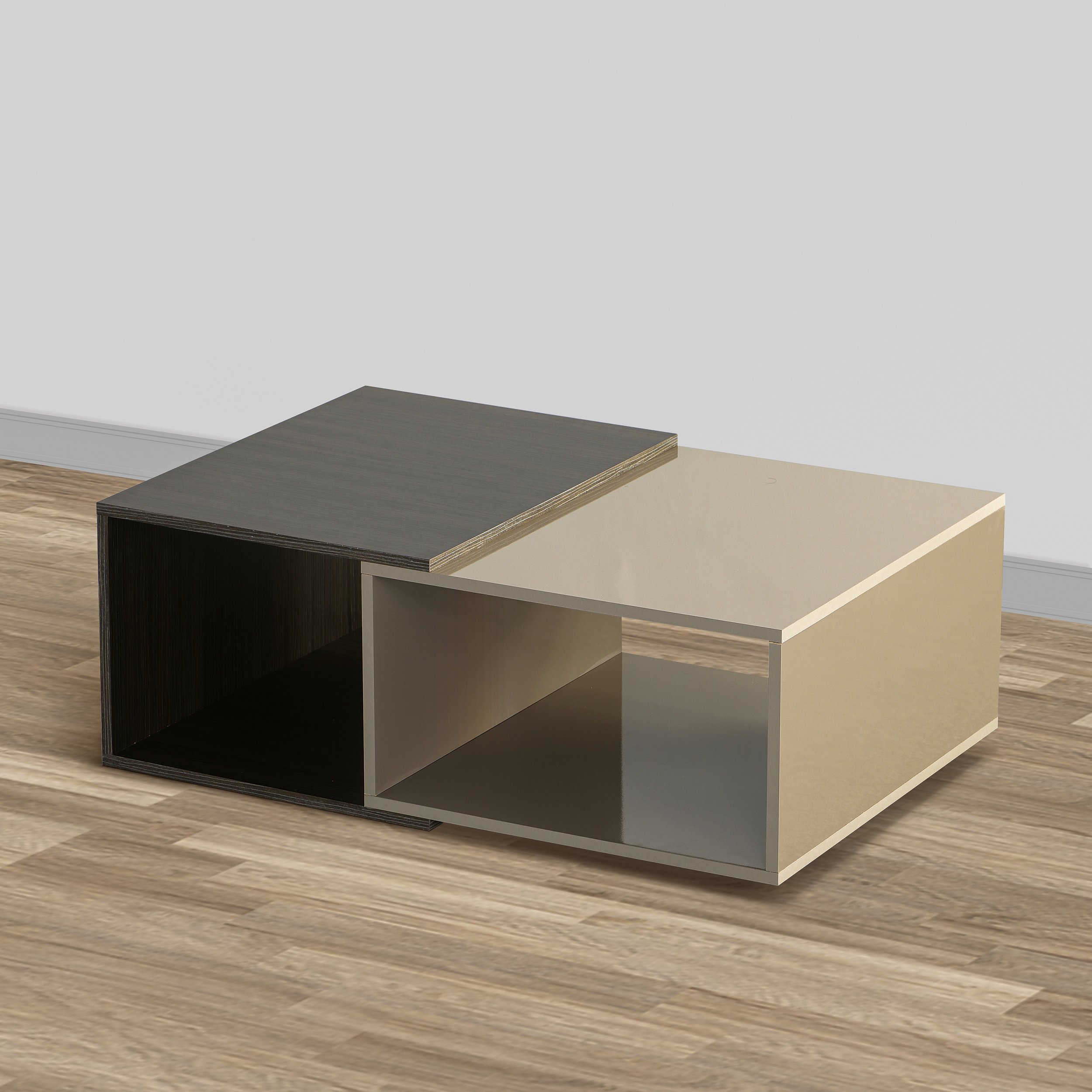 Contemporary style meets sophistication and classic taste with this expertly designed minimalistic coffee table. Featuring a clean lined rectangular silhouette; it offers two large open compartments to keep your table magazines; books; potted plants; decorations; and more. A unique blend of smooth lacquer finish on one side and wood texture on the other; fully handcrafted from a premium quality composite wood frame. The wide rectangular tabletop offers plenty of space for coffee breaks; reading; or working on laptop or tablet. The neutral light gray and cream tones harmonize easily with a wide variety of decor styles; be it contemporary; transitional; mid century modern or Scandinavian.