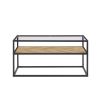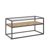 Home > 40.16" Glass Coffee Table; 2 Tier Rectangular Modern Center Table; Living Room Table; Black Metal Reversable Chevron Oak and Pine