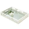 The perfect housewarming gift! Charming white tray has a wooden frame carved with Welcome Home in beautiful script. Interior is a mirror. Cutout handles. 3.8 pounds. 15.8 x 12 x 2.5 inches tall. Wood with mirror.