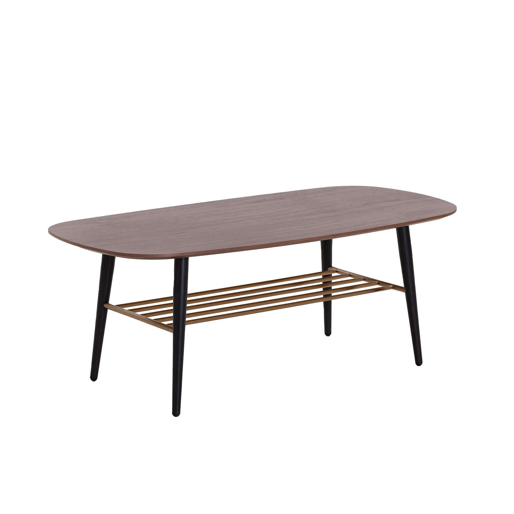 Home > Coffee Table; 2-Tier Modern Central Table Wood and Metal Center Table; oval Modern Cocktail Table for Living Room Walnut