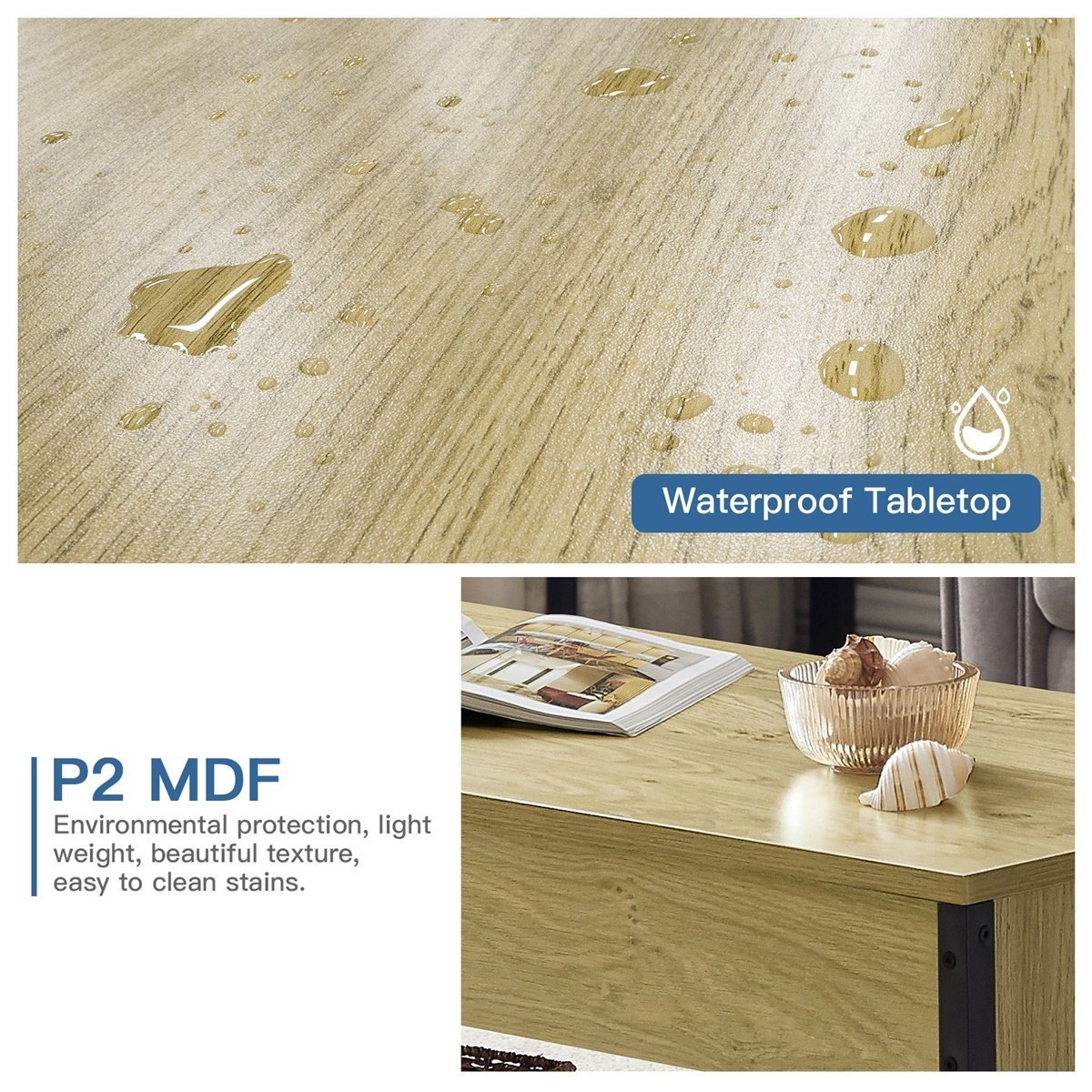 1.The modern coffee table is designed with hidden compartments and open metal mesh shelves to meet different storage needs. Movies, remote controls, coasters, and chess pieces can all be hidden under the lift table.