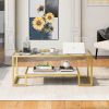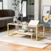 ON-TREND Modern; Minimalist Design Living Room Coffee Table; Metal with Stained White Tempered Glass; 2-Tier Sofa Cocktail Tables; Gold