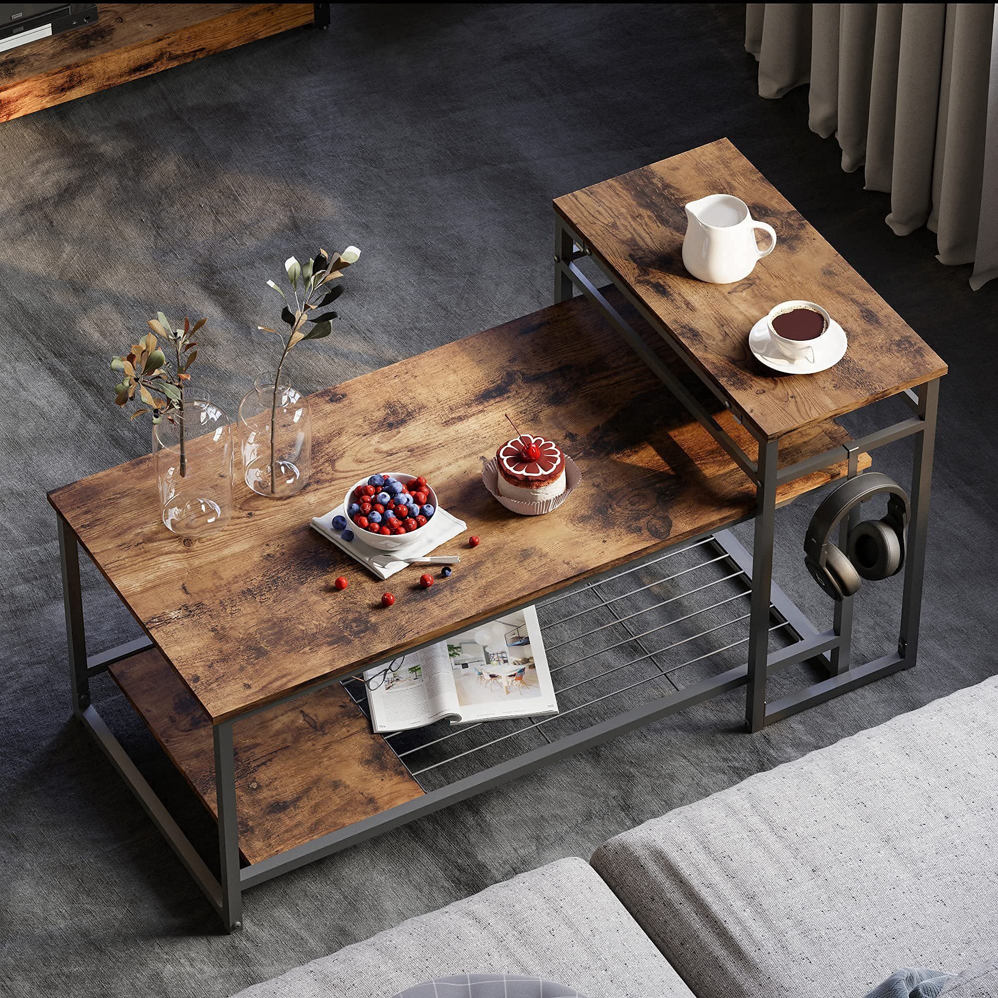 2.Our living room table [41.73” L × 18.11” H × 20.47” D] comes with a sofa side table [23.62” L × 23.82” H × 11.81” D]. Two assembly methods of the side table can meet your needs. Place it close to where you sit for extra work space, such as next to your desk, sofa, bed.
