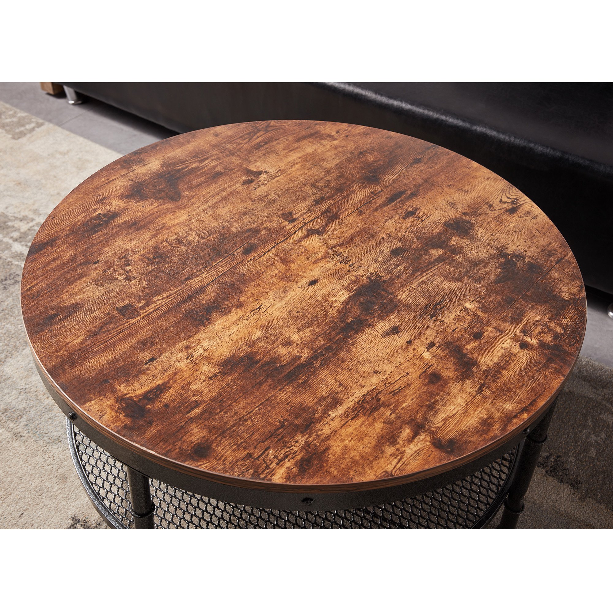 Home > WESOME 2-Tier Single Panel Round Coffee Table for Living Room and Bedroom; with 3D Texture Metal Frame and Mesh