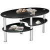 Made of tempered glass, this coffee table is strong and durable and looks simple and stylish. The smooth and non-angular design of this table provides users more reliable and safe experience. It features 2 bottom shelves, providing more storage space for magazines, books, remote controls or other decorations.The clean and bright design combined with the harmonious proportions will create a calm and relaxing ambience, perfect to unwind your mind and body from a hard day at work.