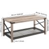38.82" Farmhouse Coffee Table; 2-Tier Cocktail Table; Center Table with Mesh Shelf; Steel Frame; Corner Protection; Industrial Style; Long Table