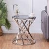 Set of 1 Round Glass Top Side Table for Living Room- Black Grey Tempered Glass & Silver Stainless Steel Frame; 19.5" Modern Spiral Center Table Small