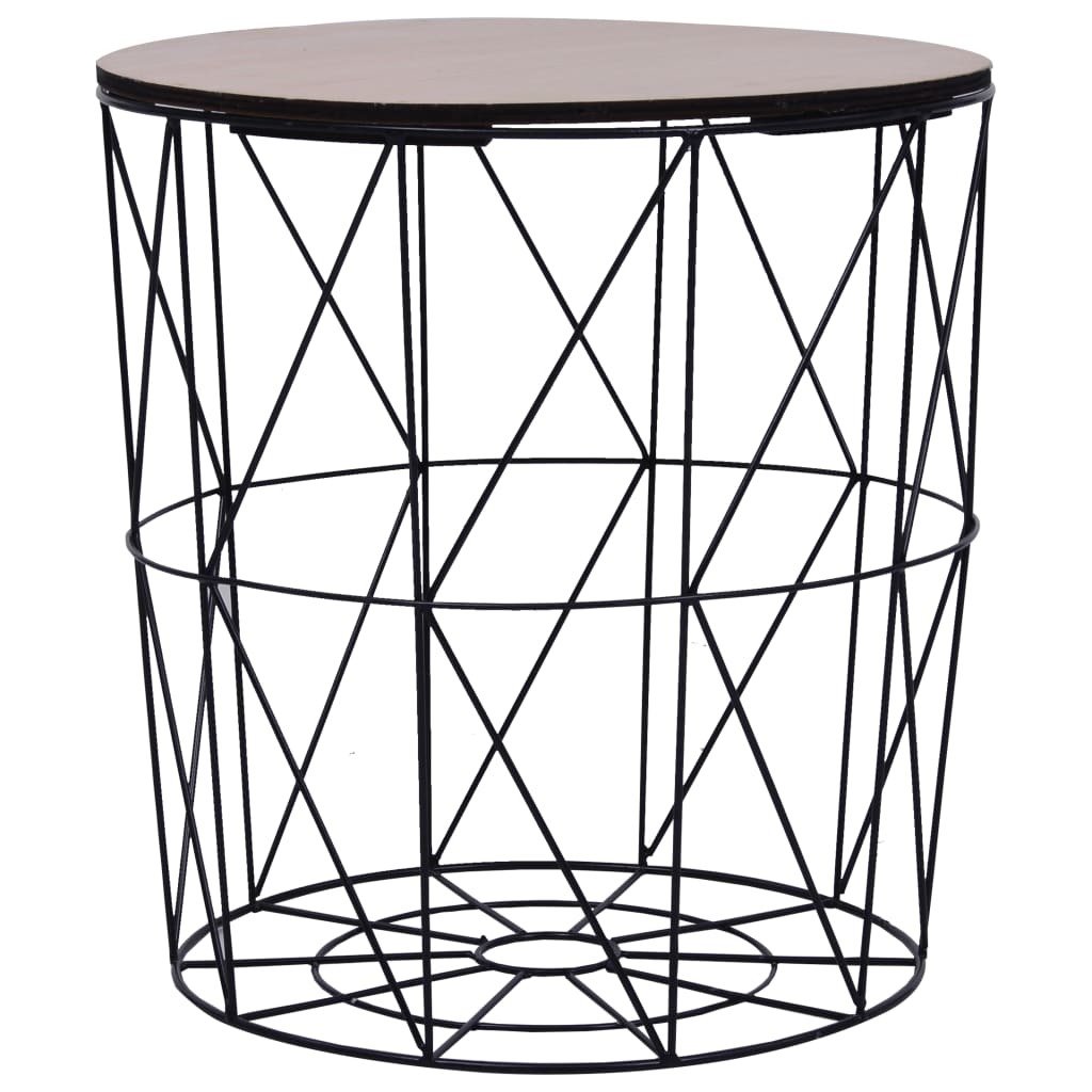 The solid wood tabletop provides a smooth and stable surface on which you can place drinks; vases or other decorative items. By removing the top; you turn the side table into a storage basket. Moreover; the smaller table can be placed inside the larger one to save space. The strong powder-coated metal frame adds to the robust construction as well as an industrial look.