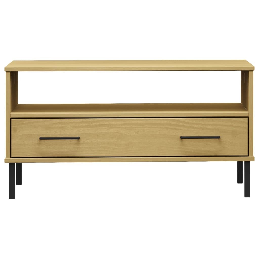 Home > vidaXL Coffee Table with Metal Legs Brown 33.5"x19.7"x17.7" Solid Wood OSLO