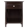 X-style side panels bring a contemporary look to the warmth of wood in the Winsome Wood Xylia Accent Table. This all-around end table will look great in the living room, as a bedside table, or as a printer stand and storage unit in your home office. The large drawer is finished with a brushed silver knob and will keep the TV remotes, an iPad, or charging wires within easy reach. A lower shelf is perfect for books, magazines, or for collectibles that will be open to view from three sides. Constructed of sturdy solid and composite wood in a rich coffee finish. For larger beds, sofas or rooms, try adding one accent table on each end to unify the space (each sold separately). Conveniently packed and shipped in 1 box that includes the hardware necessary for assembling. Replacement parts can be requested directly to the manufacturer within 60 days from date of purchase.